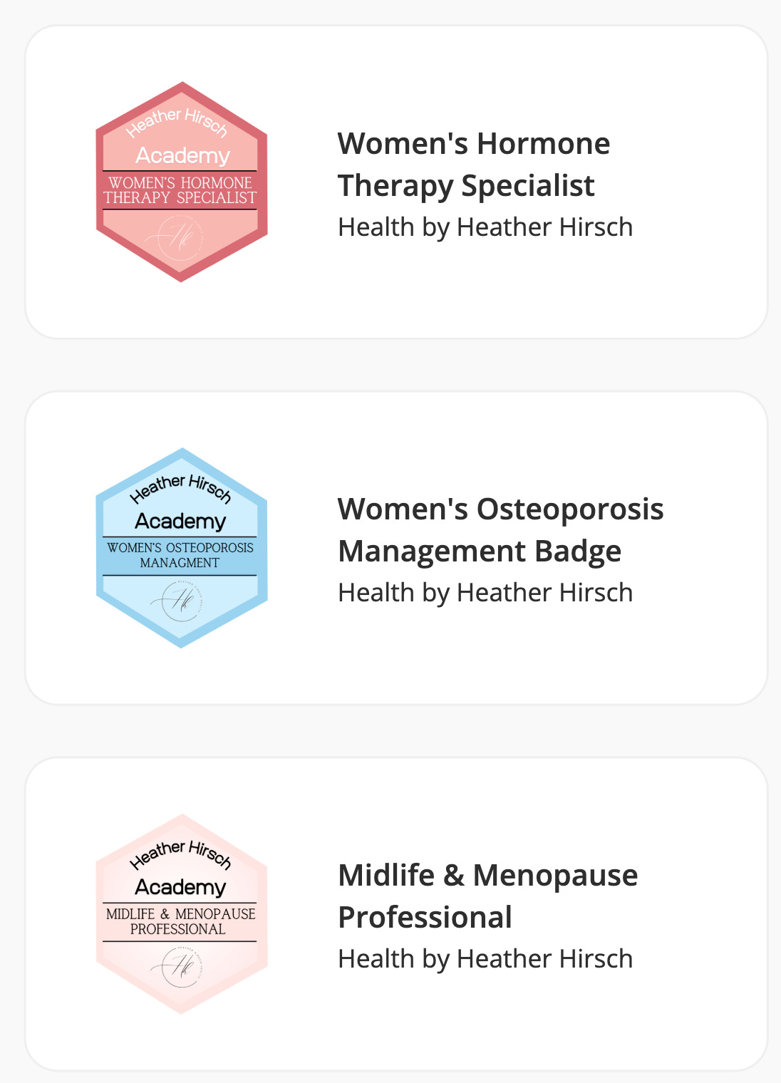 We in 2024 we launched the Heather Hirsch Academy Directory—a living map of clinicians who’ve completed our coursework and demonstrated competence in midlife care. It’s searchable, trustworthy, and designed to bridge the gap between education and access.